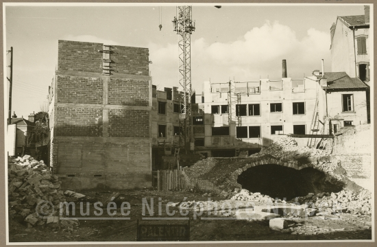 Rue Philibert Guide sur l'emplacement des anciennes caves "Guichard-Potheret" construction d'un immeuble d'habitation par la Sté Logéfehrguide" 20 Décembre 1958