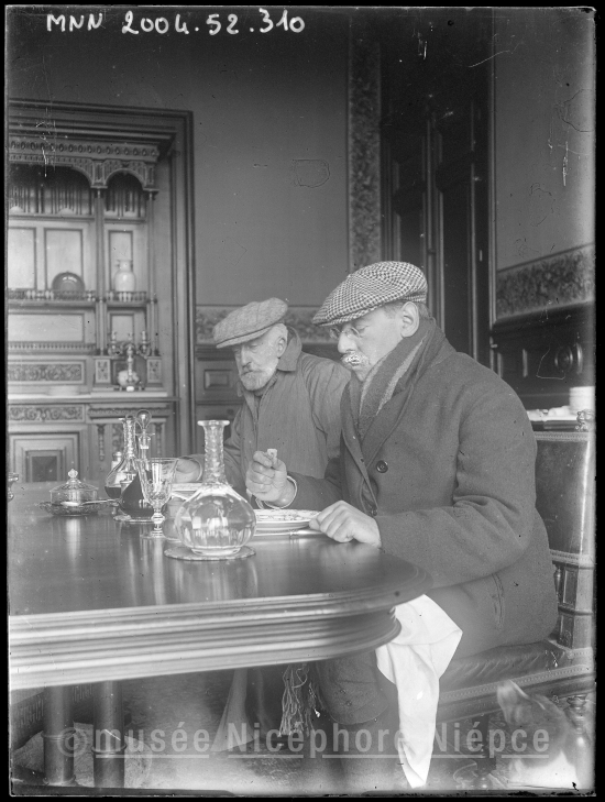 scène - homme - verre - carafe - repas - manteau - casquette - salle à manger - Robert DEMACHY