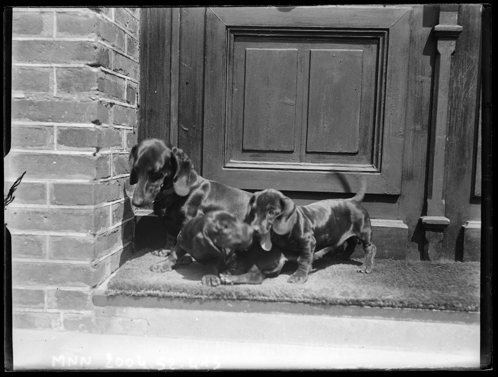 Trois teckels sur la terrasse du château