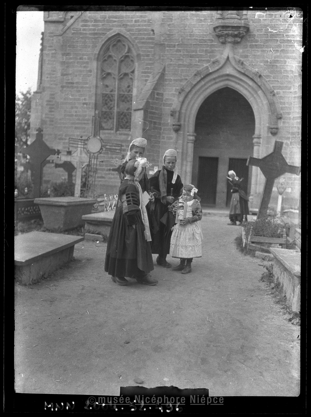 Bretonnes devant l'entrée d'une église