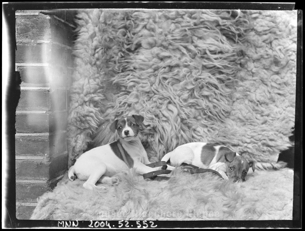 Chiens sur la terrasse du château