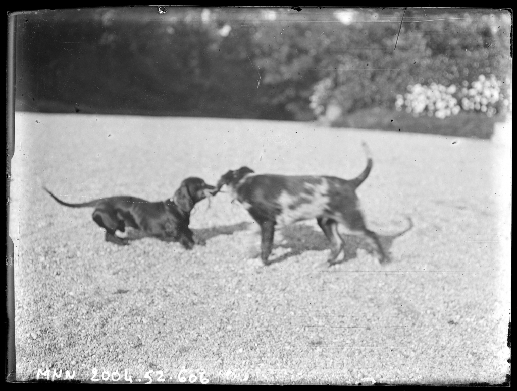 Deux chiens jouant dans le jardin