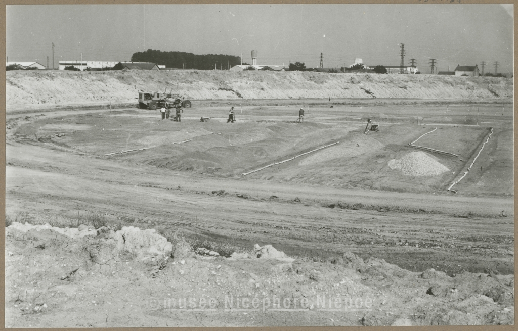 Travaux du futur Parc des Sports : aménagement du terrain d'honneur de rugby 6 Juillet 1959