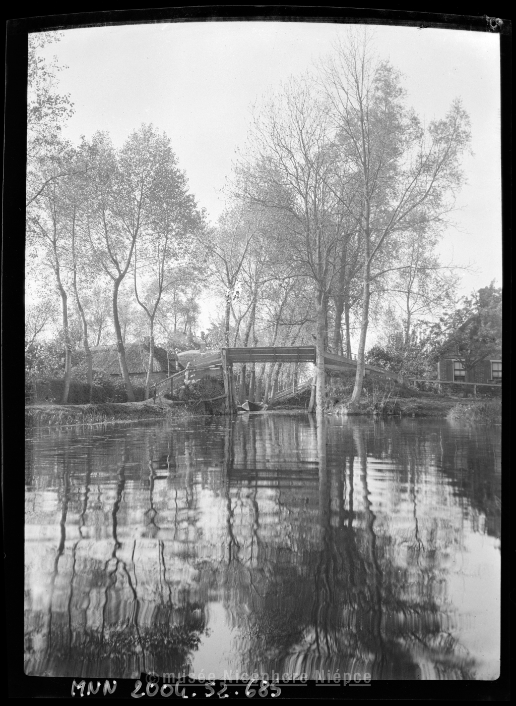 Pont de bois et maisons dans la campagne hollandaise