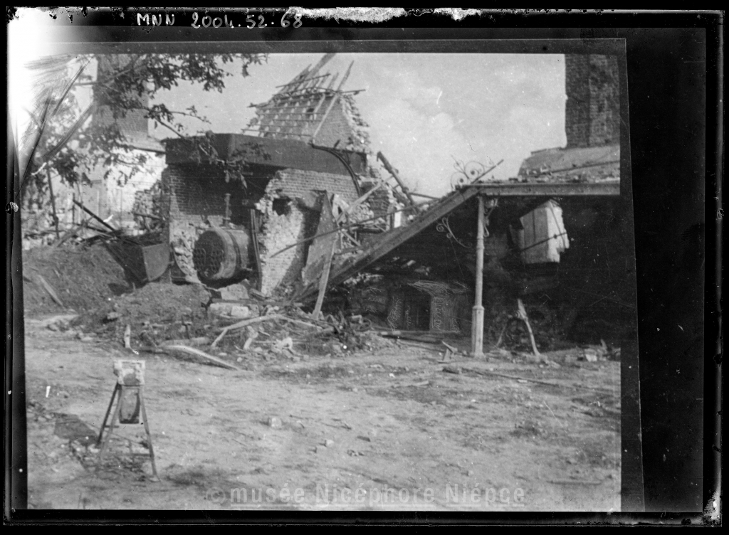 Une ville en ruines près du front (négatif obtenu daprès une photographie du front réalisée par Bob Demachy)