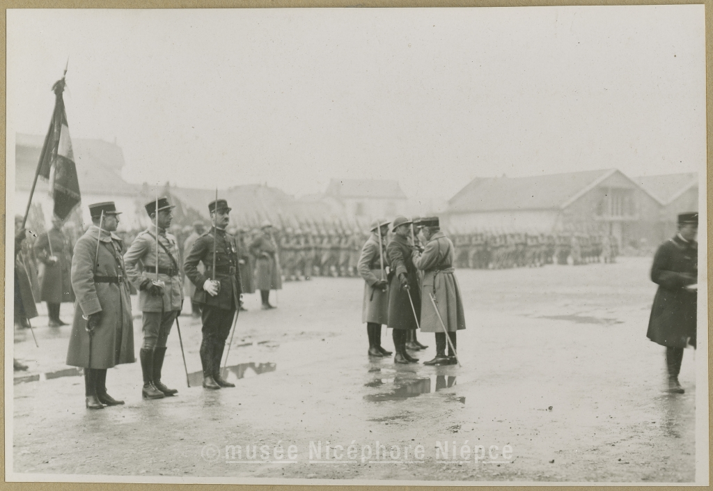 Une prise d'armes, à Chalon, à la caserne Carnot, le 17 janvier 1931. Remise de décorations.
