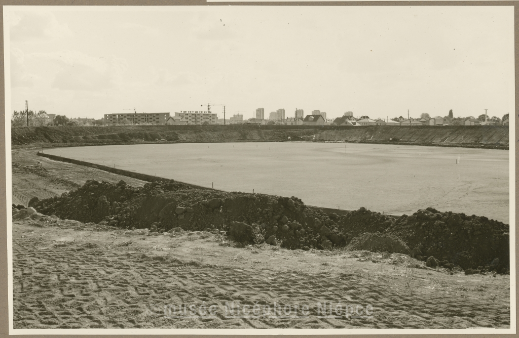 Travaux du futur parc des sports Vue en direction du Sud sur le terrain de compétition de rugby 12 octobre 1959