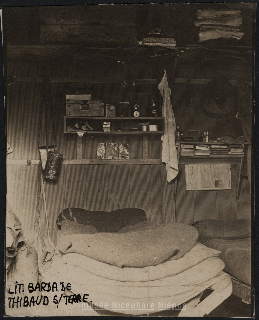 Lit et barda dans une / casematte sur le front / de l'est en 1918 du / jeune Lieutenant Théophile / Thibaud