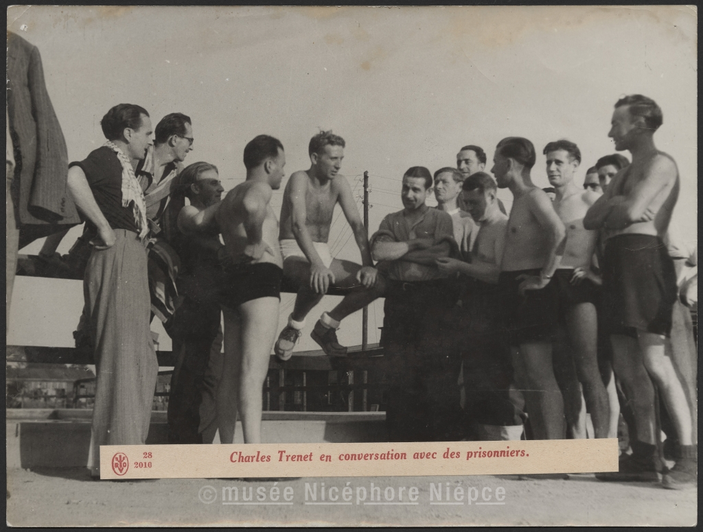 Charles Trenet en conversation avec des prisonniers