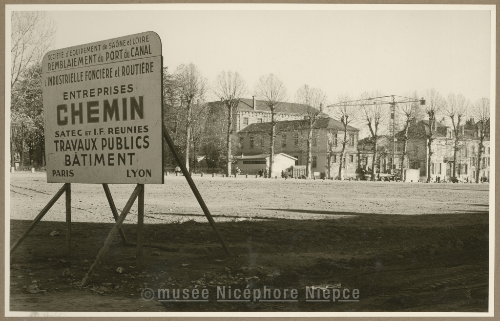 vue d'architecture - Chalon-sur-Saône - chantier - canal - quartier - panneau - assèchement - Charles GROS