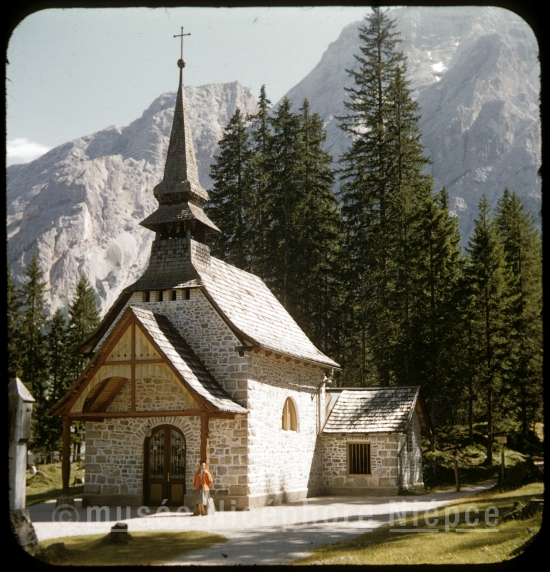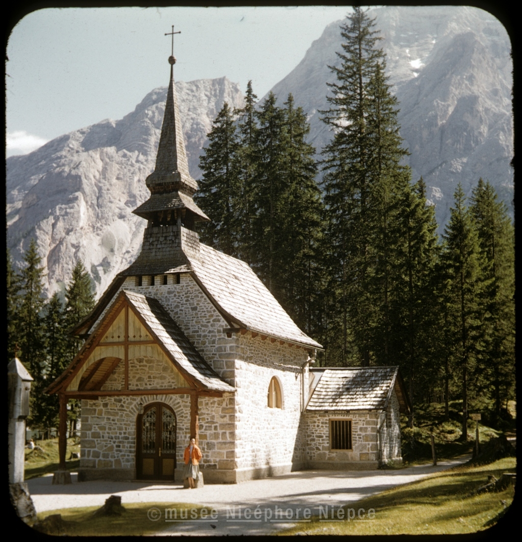église dans la région du lac de Braies en Italie