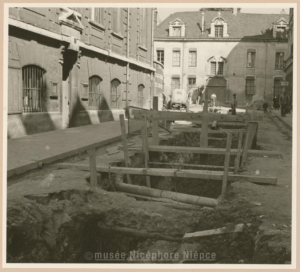 Travaux du grand collecteur du Centre, rue de Thiard et place Ponthus de Thiard 12 Septembre 1960