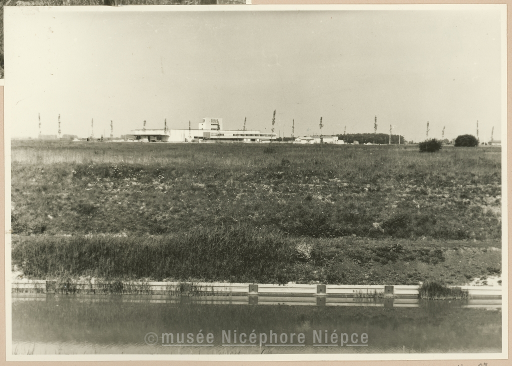 Construction de l'usine Kodak-Pathé Façade ouest, vue prise du canal 18 Mai 1961