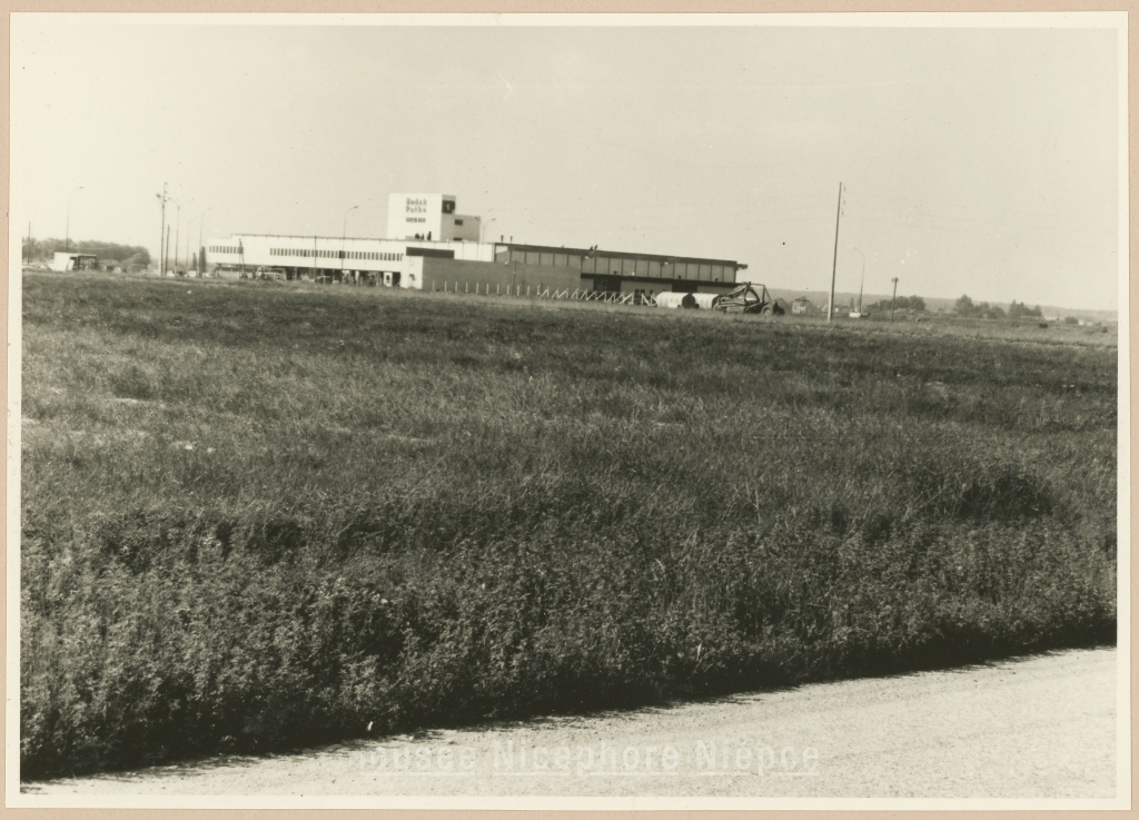 Construction de l'usine Kodak-Pathé Façade sud-ouest, vue prise de la rue 18 Mai 1961