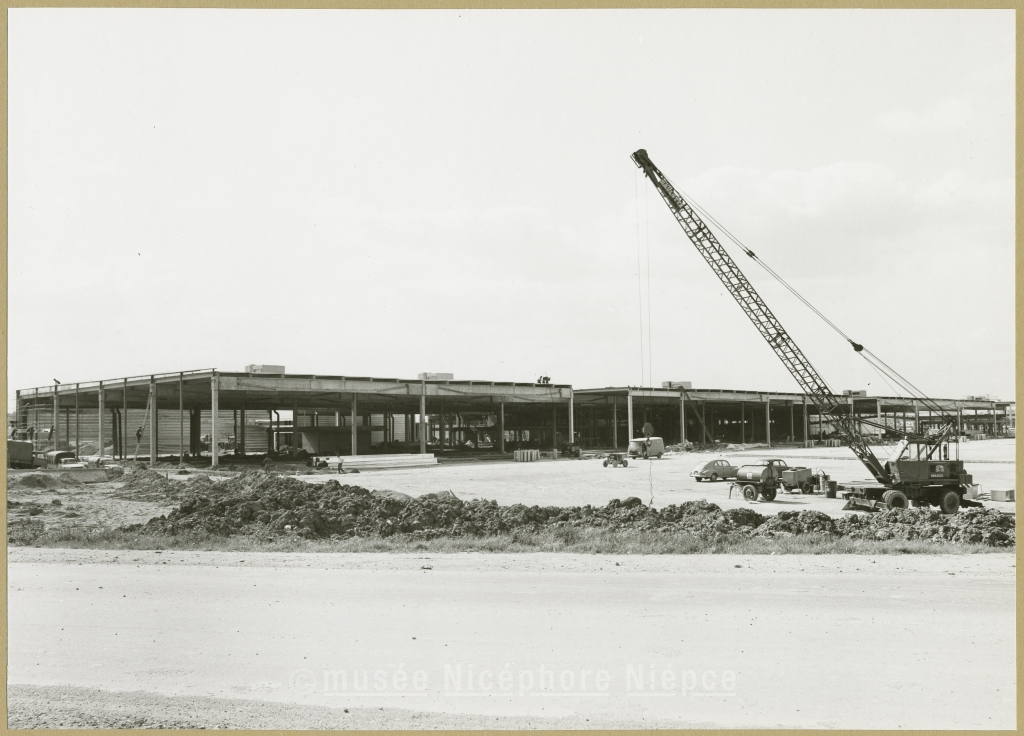 Construction de l'hypermarché "Mammouth" et du "Centre Commercial de la Thalie, sur les terrains remblayés de la vallée de la Thalie Juin 1973