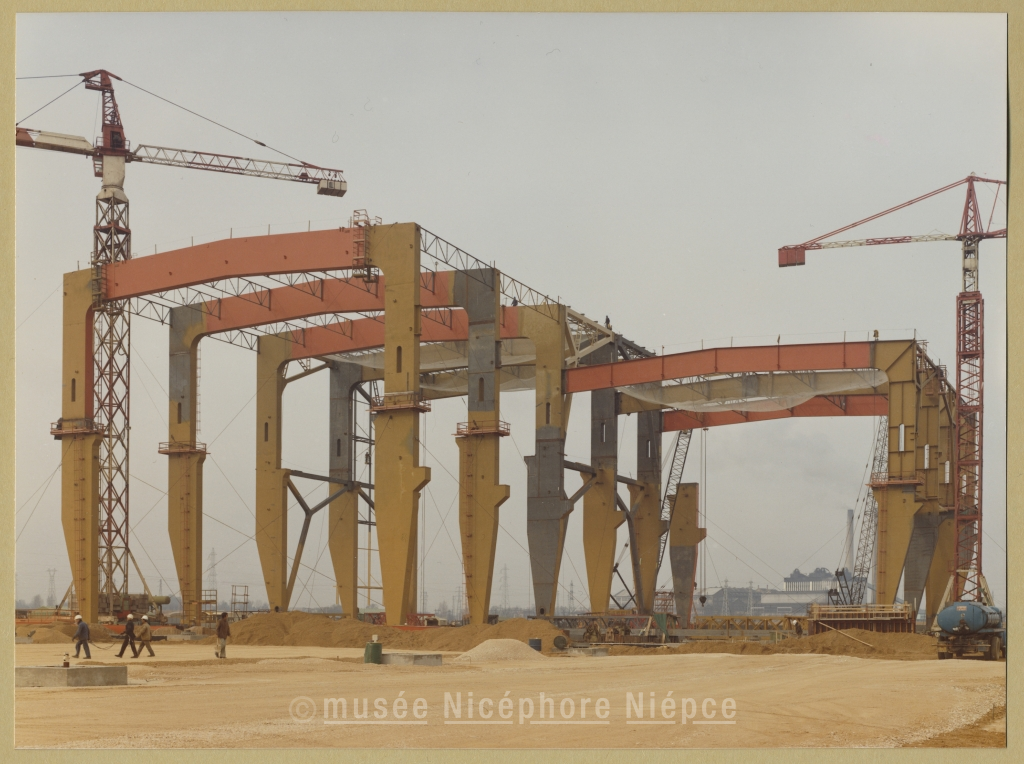 Premiers travaux de montage de la future grande usine Framatome Avril 1975