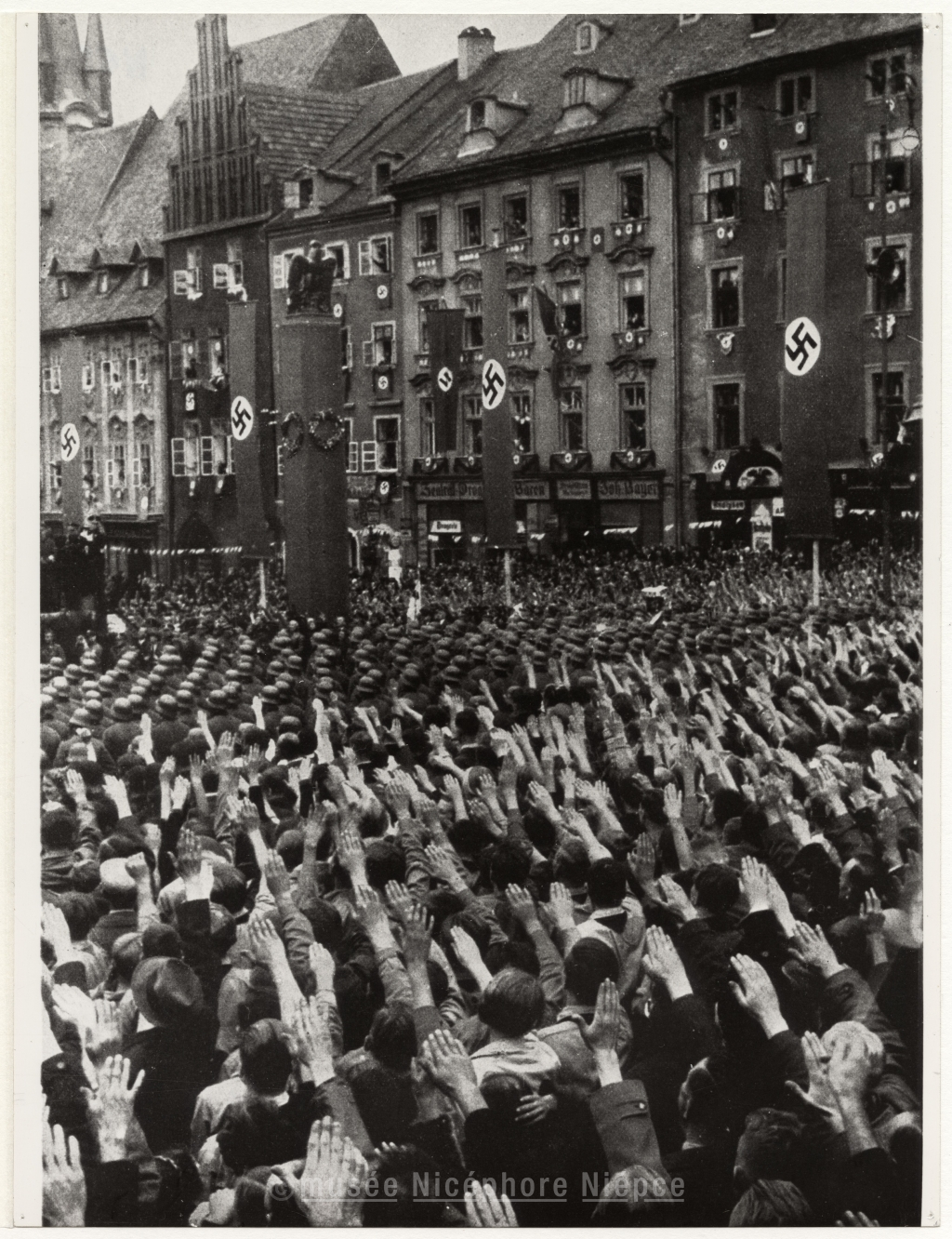 Après l'Anschluss: / manifestants nazis acclamant Hitler / à Eger (Autriche)