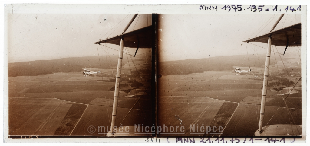Avion de reconnaissance Farman en plein vol croisant un Nieuport de chasse
