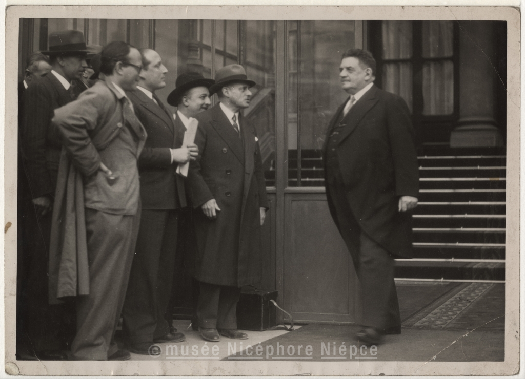 Journalistes saluant l'arrivée d'une personnalité (?)
