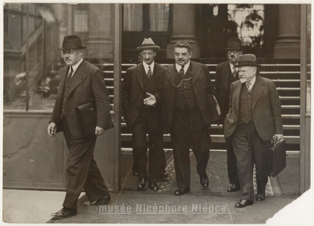 Conseil des Ministres à l'Elysée / Sortie des MM. Maupoil, Georges Bonnet, Herriot, Frossard et Regnier