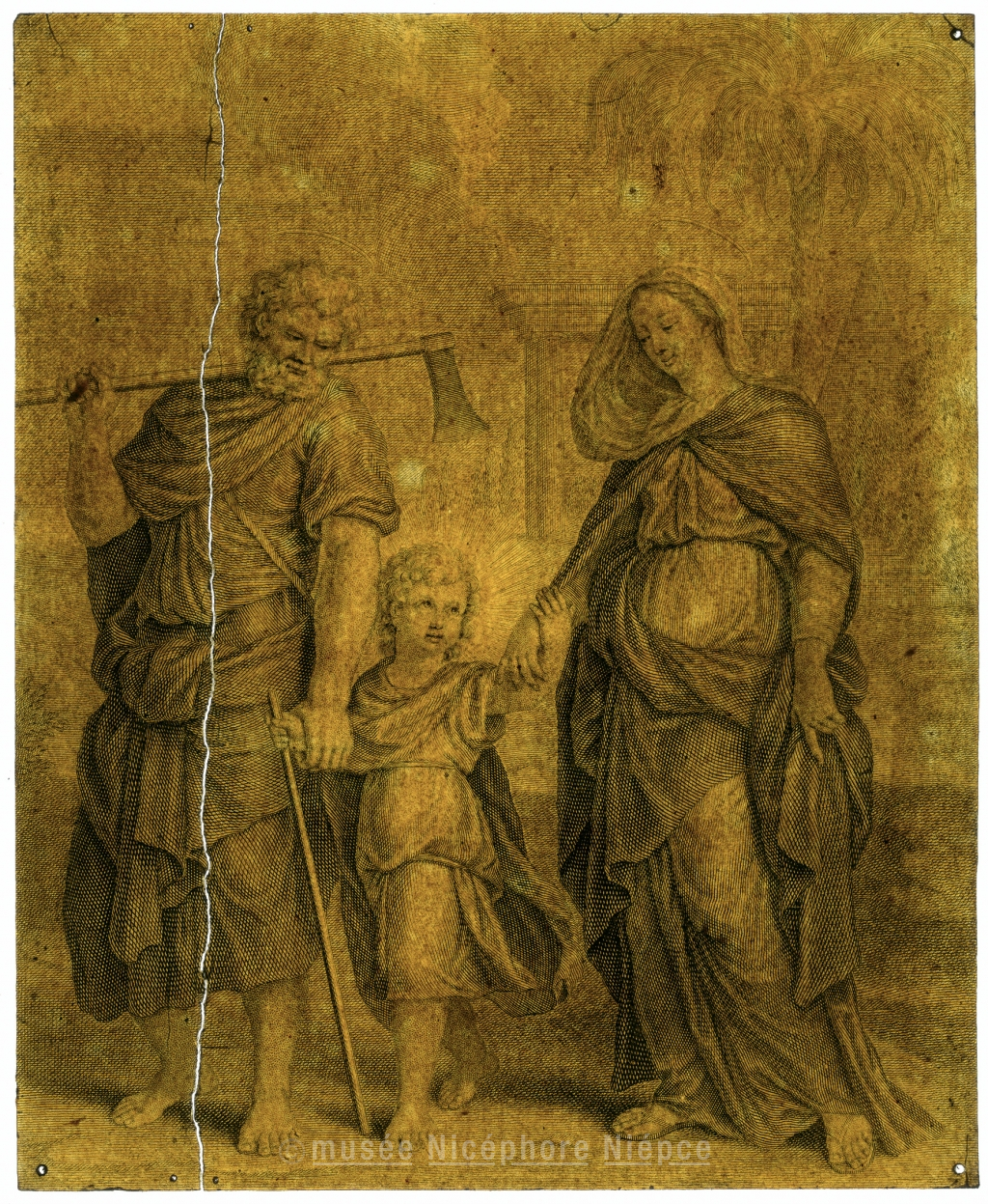 Vierge - hache - famille - figures bibliques - Joseph - Enfant Jésus - auréole - Joseph Nicéphore NIÉPCE - Etienne-Jahandier DESROCHERS