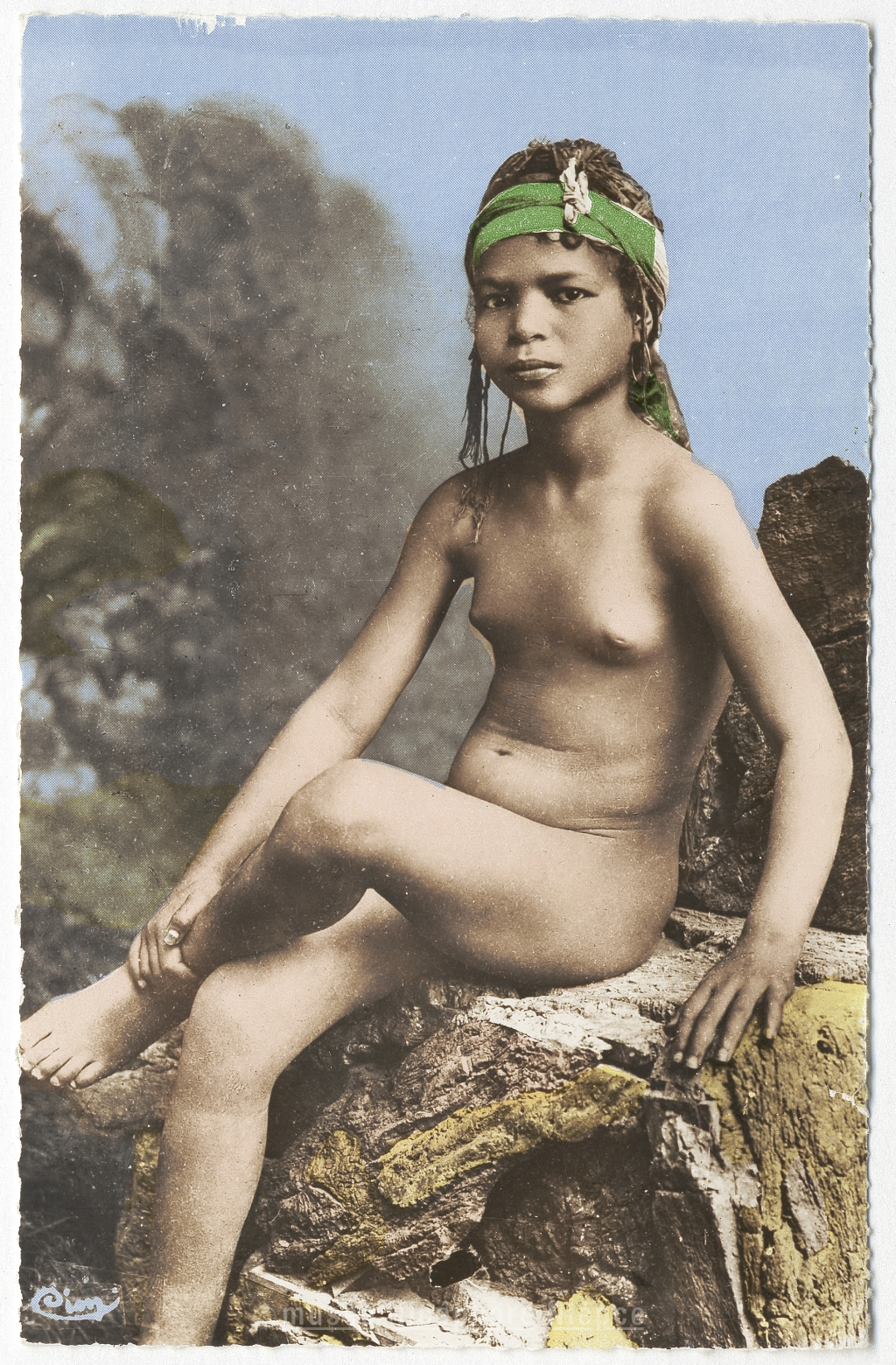 assis - portrait - en pose - fillette - fond peint - rocher - nudité - colonialisme - R. PROUHO