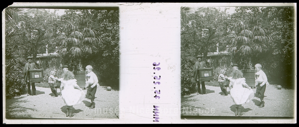 Joueur d'orgue de barbarie dans le jardin de la famille Lumière à La Cioatat