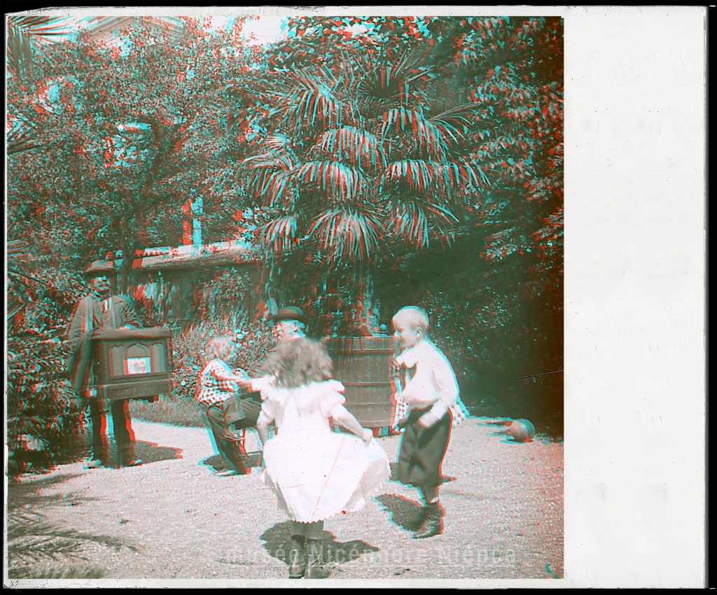 Joueur d'orgue de barbarie dans le jardin de la famille Lumière à La Cioatat