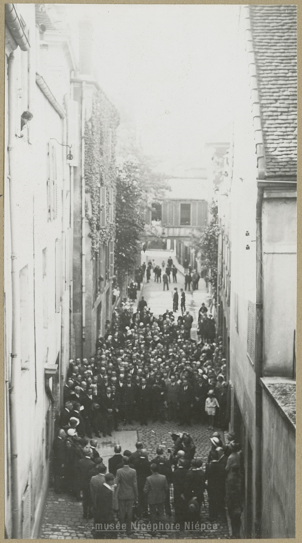 Fêtes du Centenaire de N. Niépce Inauguration d'une plaque commémorative, sur la maison natale de Nicéphore Niépce, rue de l'Oratoire, par le Comte de la Baume Pluvinel, membre de l'Académie des Sciences.-5 juin 1933
