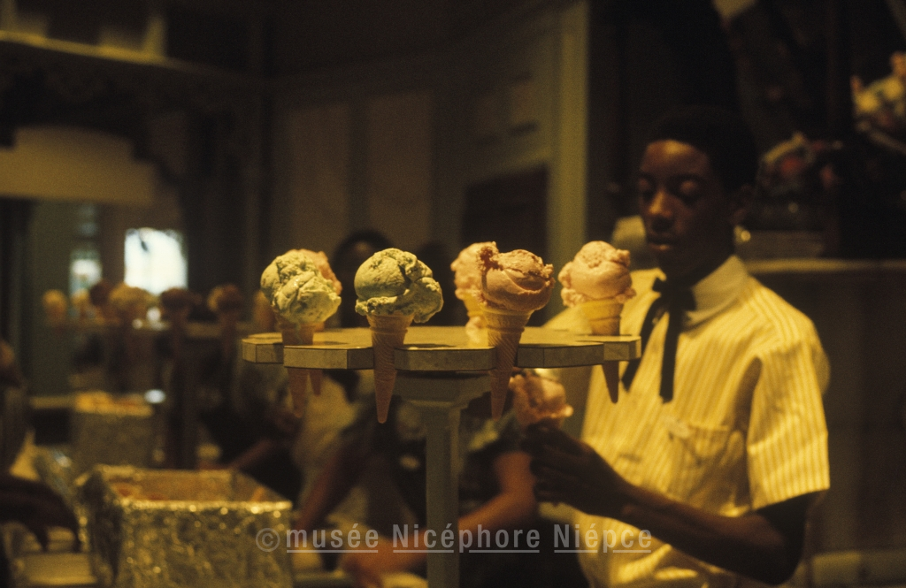 Serveur avec un plateau de glaces