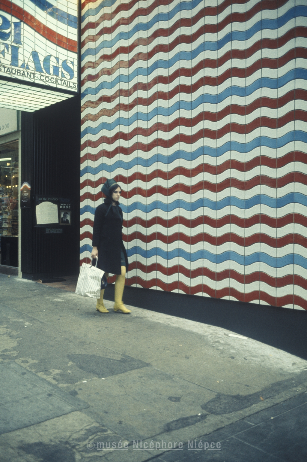 Jeune femme passant devant un mur peint, aux Etats-Unis