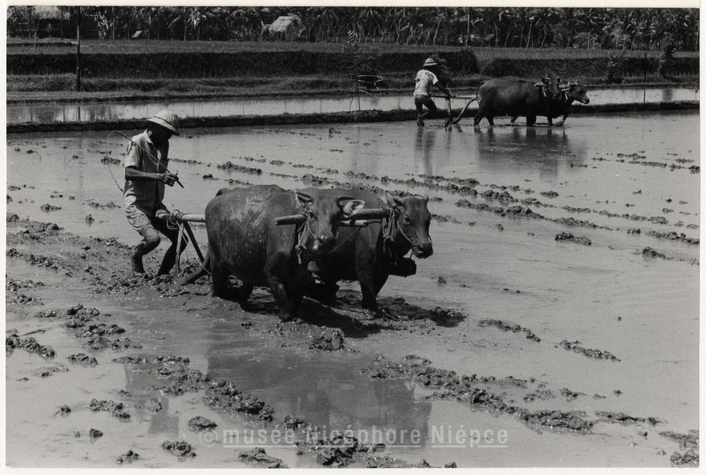 Labourage d' une rizière en Asie