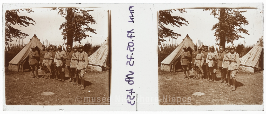Soldats posant devant leur campement