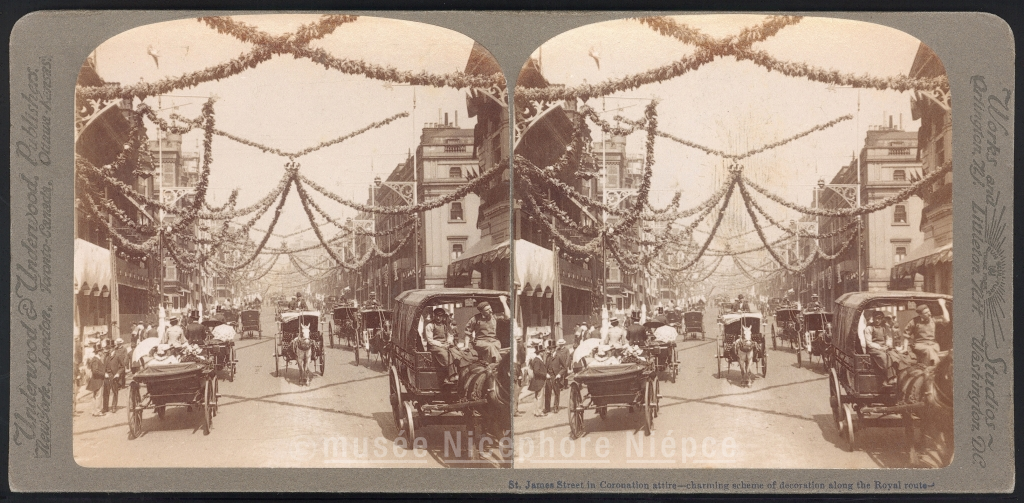 St James Street in Coronation attire- charming scheme of decoration along the Royal route