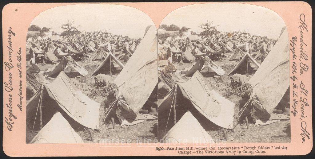 9409. San Juan Hill, where Col. Roosevelt's Rough Riders led the / Charge - The Victorious Army in Camp, Cuba
