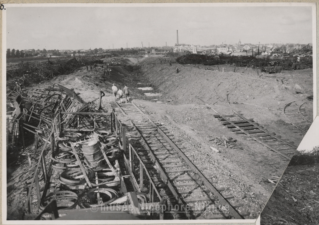 Le 25 Août 1944, l'aviation alliée bombarde, en gare de Chalon, des convois allemands, dont un train de munitions. - Effroyable explosion. Très nombreuses victimes parmi les Allemands. Dégats considérables