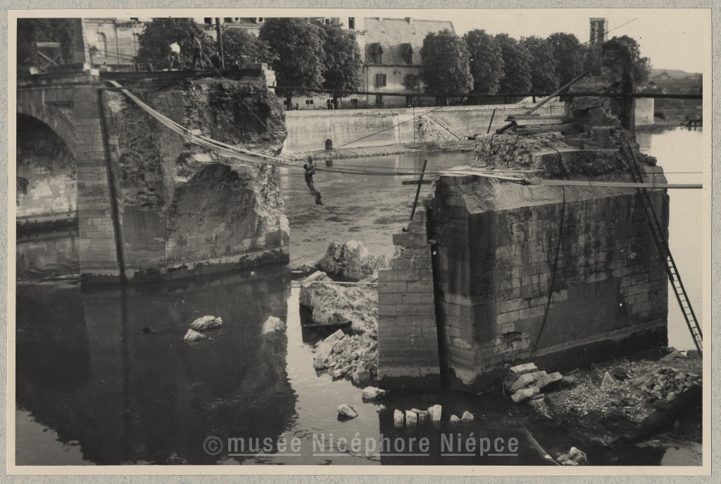 Le 10 Septembre 1944, rétablissement des canalisations d'eau potable sur le pont Saint-Laurent