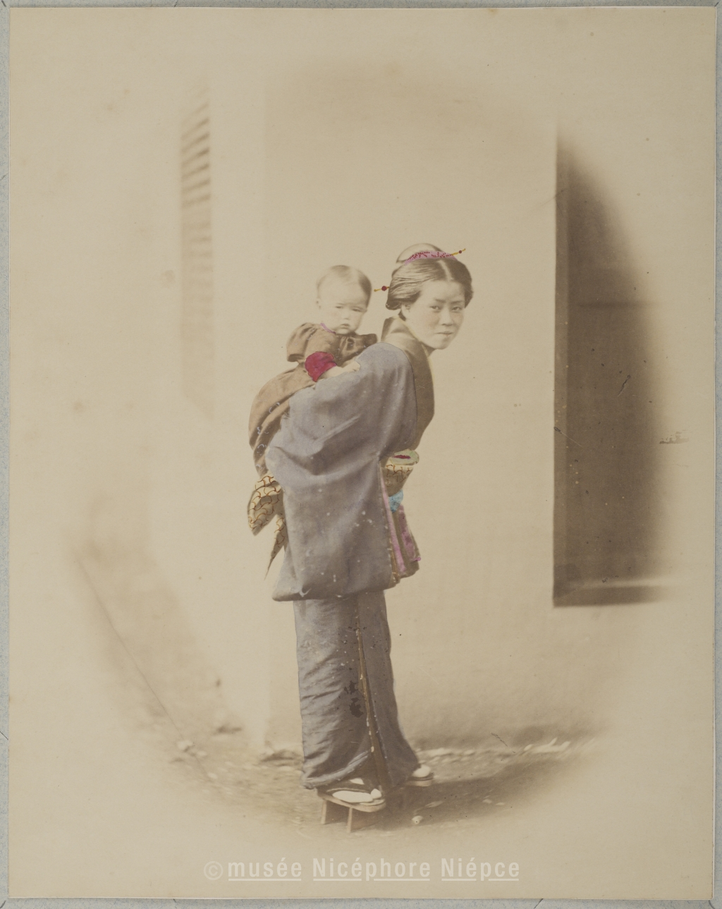 Jeune femme japonaise portant un enfant sur son dos