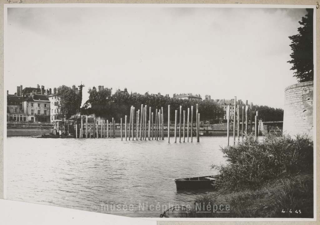 Construction d'un pont de bois provisoire sur la Saône