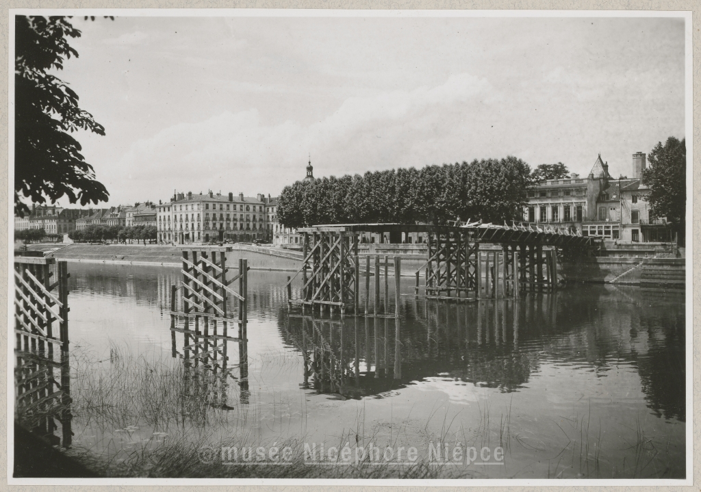 Etat des travaux du pont de bois sur la Saône en Juillet 1945