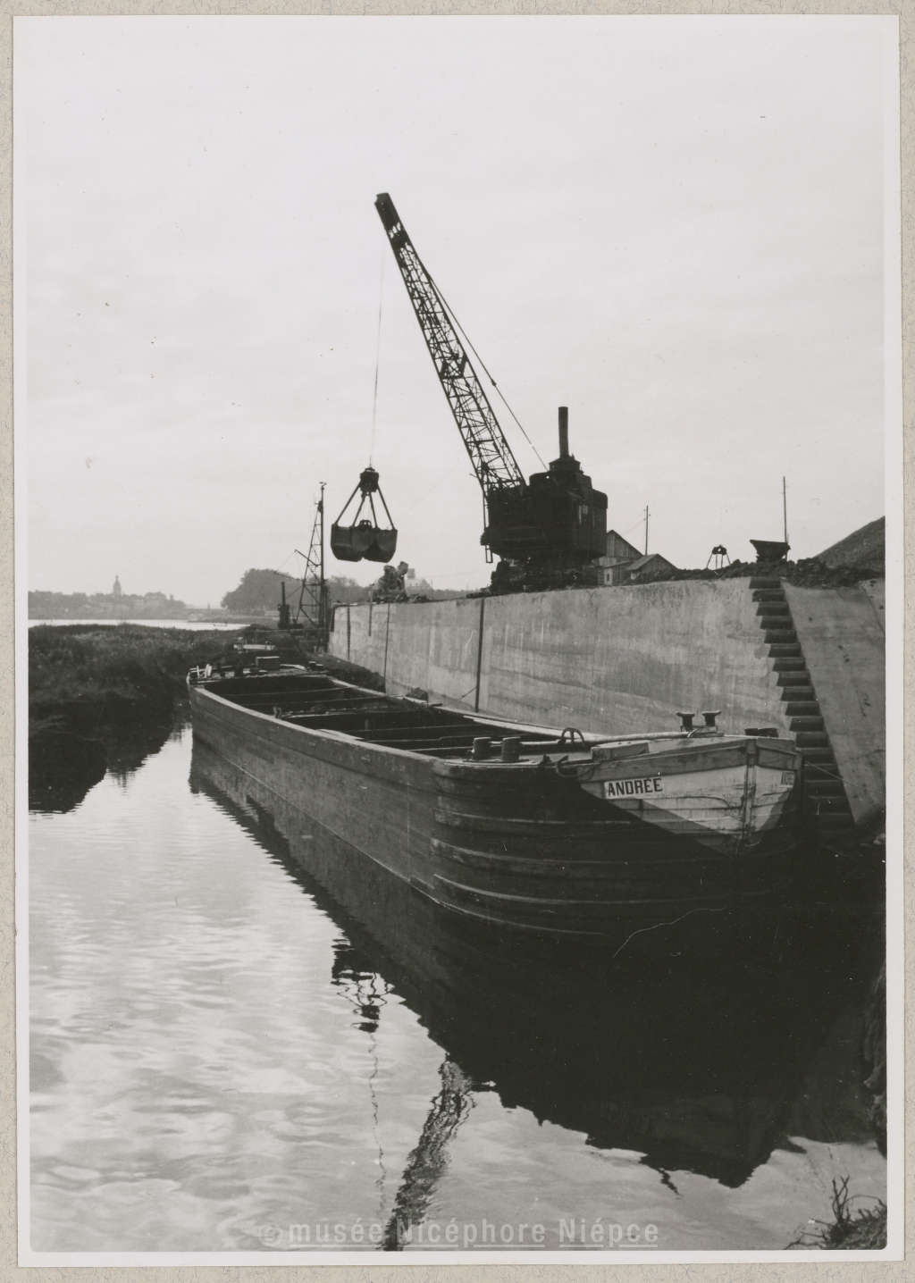 Travaux du port-fluvial, construction du quai, novembre 1945