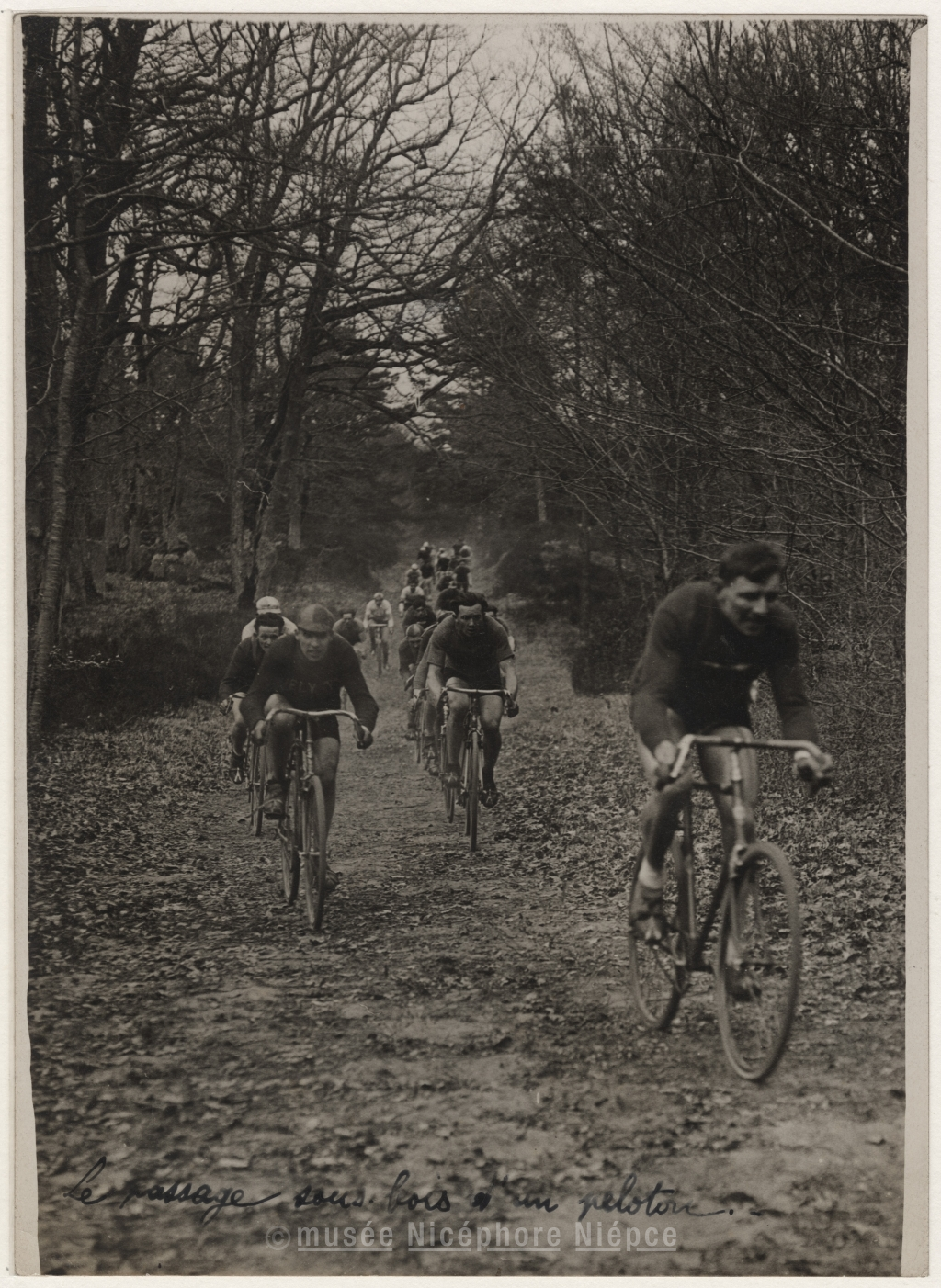 Fontainebleau - Championnat de France de / cross cyclo-pédestre. Le passage sous bois d'un peloton