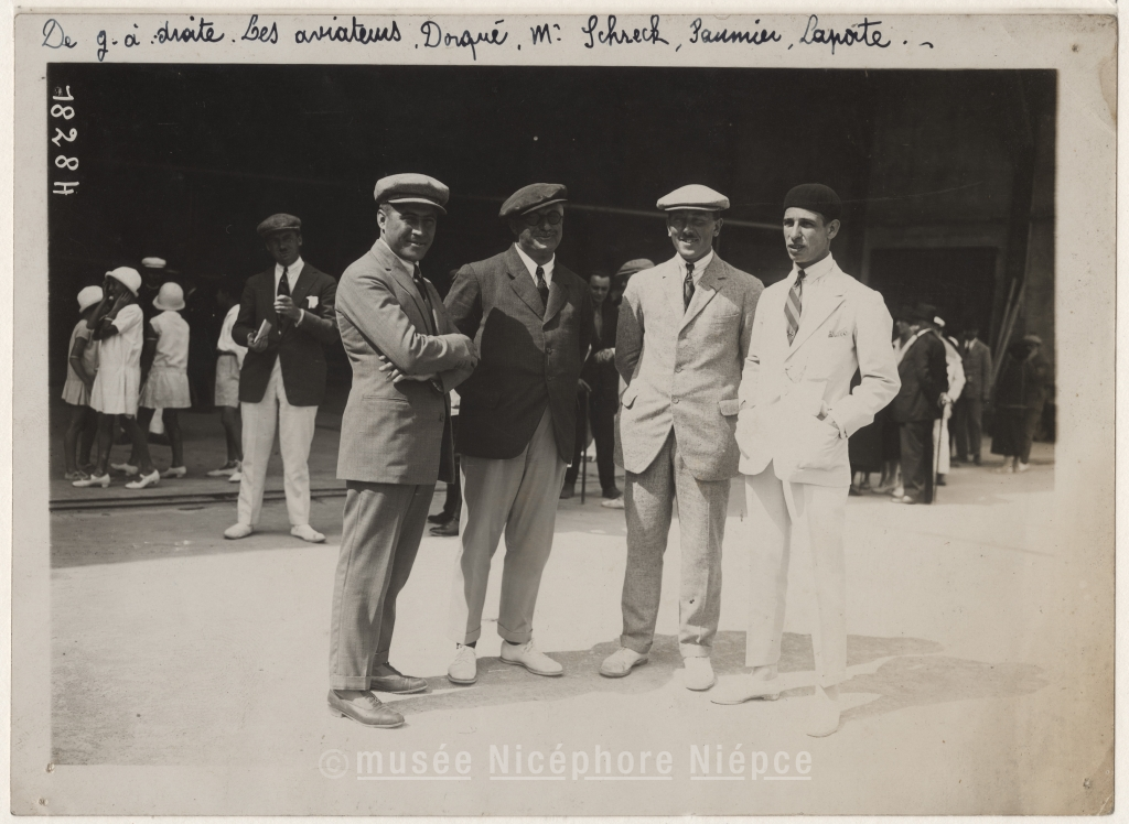 Meeting de St-Raphaël - De gauche à droite / les aviateurs : Dorqué, M. Schreck, Paumier, Laporte