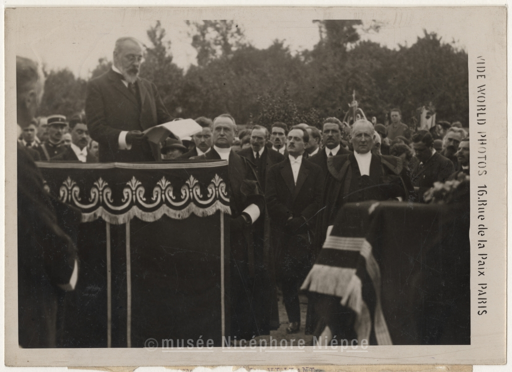 Obsèques de M. Viviani / à Seine Port près de Melun / M. Steeg Garde des Sceaux prend / la parole au nom du Gouvernement