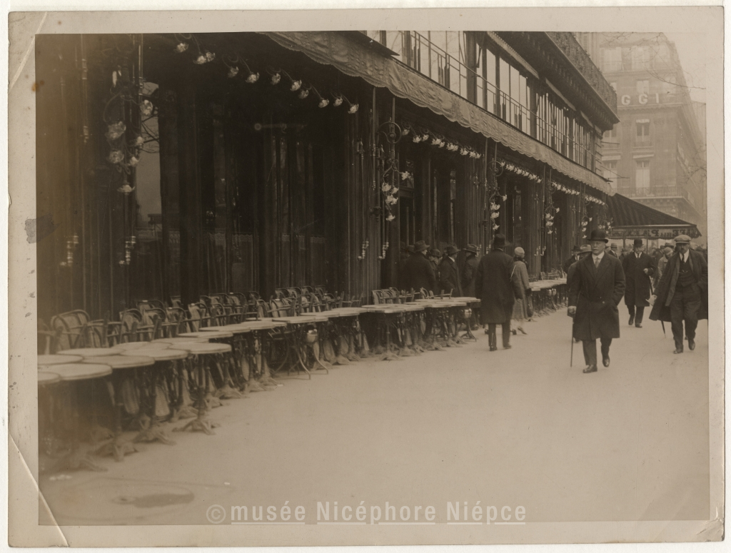 Café de la Paix fermé lors d'une grève des commerçants, contre les impôts