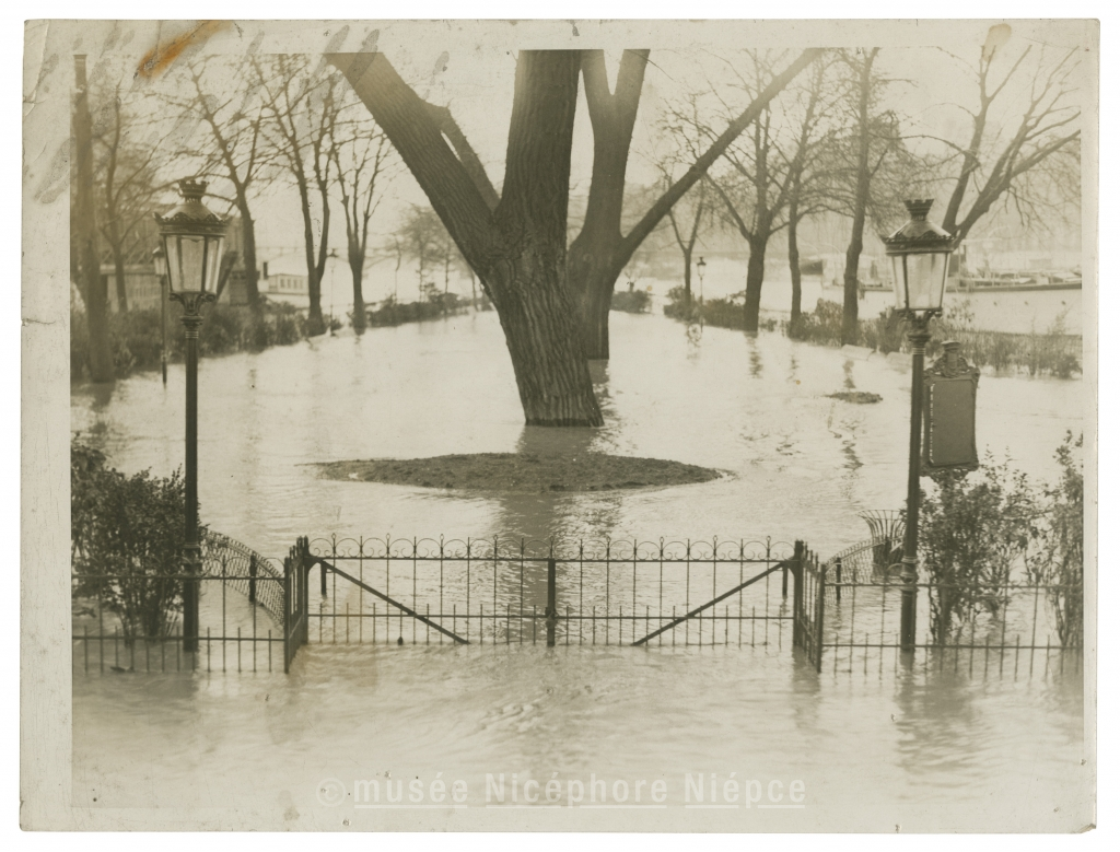 Jardin public inondé, crue de l'Oise (?)