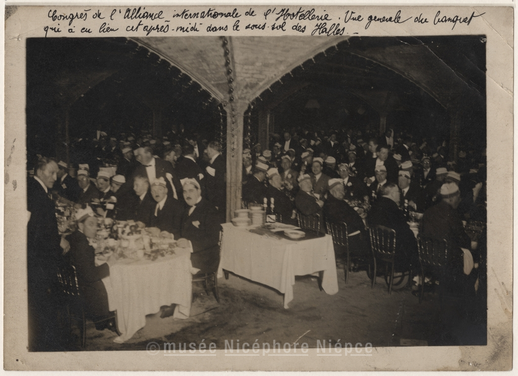 Paris. Congrès de l'Alliance / Internationale de l'Hôtellerie. Vue générale / du banquet / qui a eu lieu cet après-/ midi dans le sous-sol des Halles