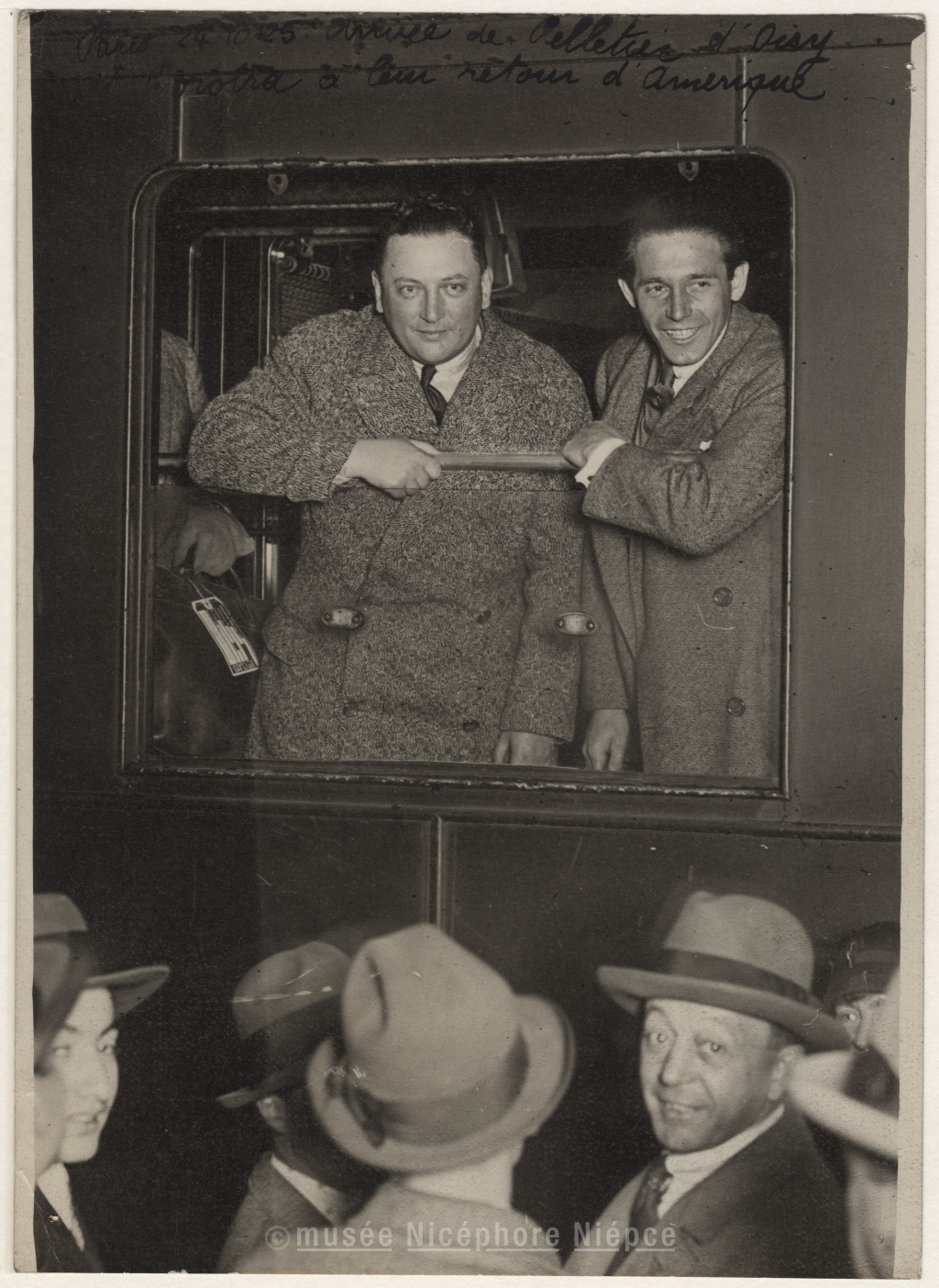 Paris. Arrivée de Pelletier d'Oisy / et Borotra à leur retour d'Amérique