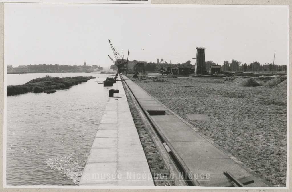 Etat des travaux du port fluvial en septembre 1947 Vues prises en direction de l'aval