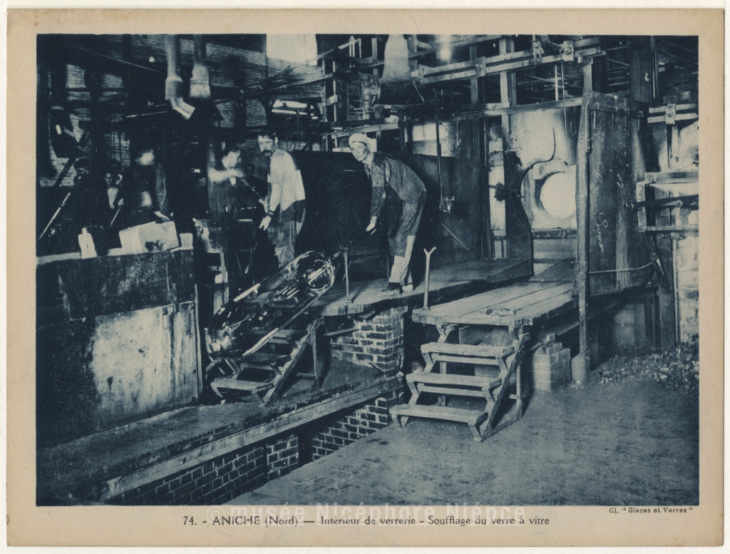 74. ANICHE. (Nord) - Intérieur de verrerie - Soufflage du verre à vitre